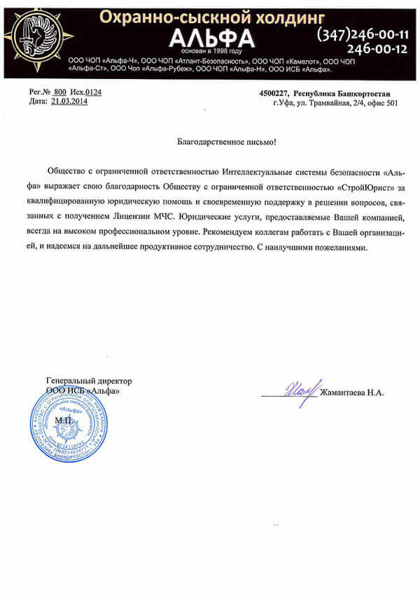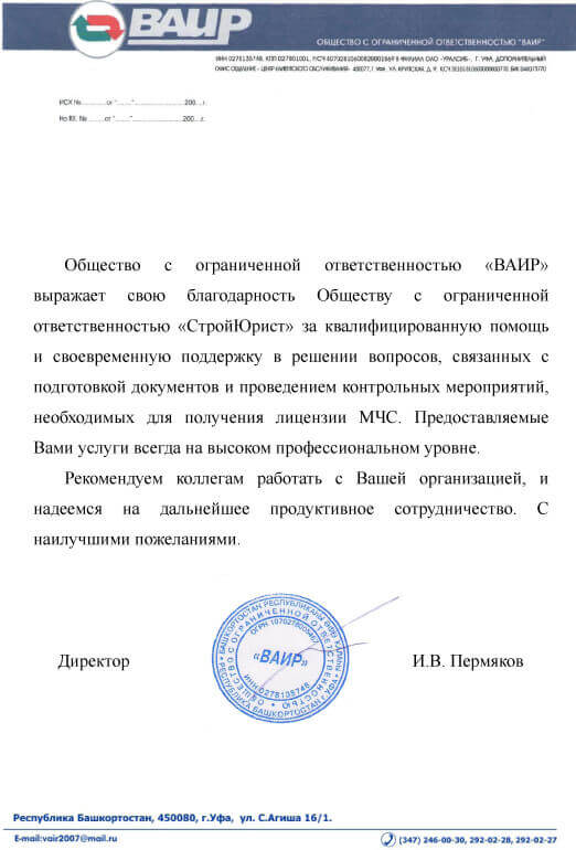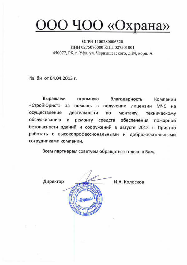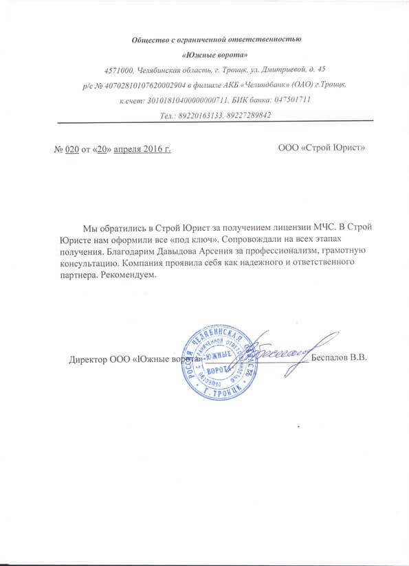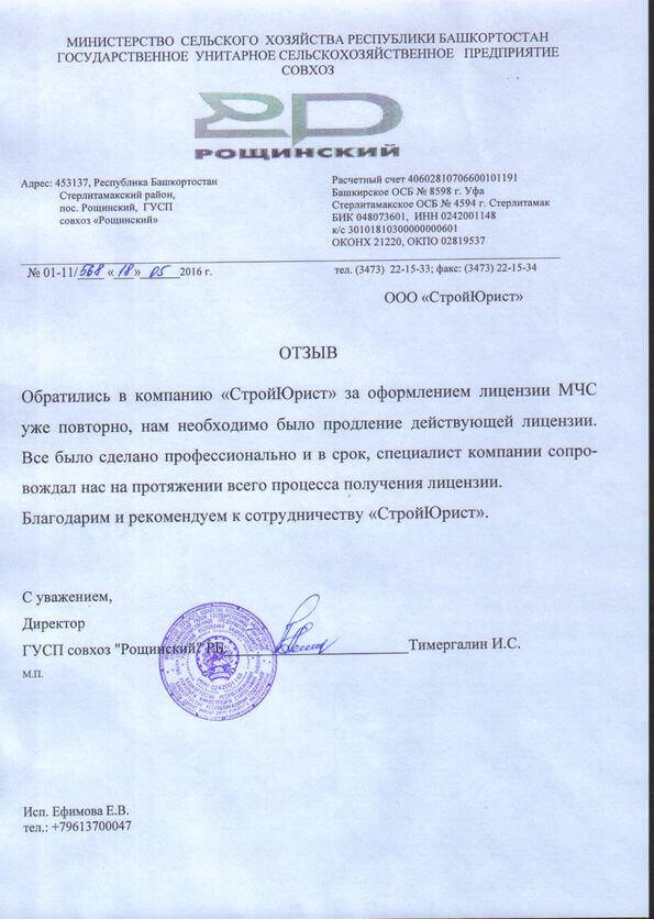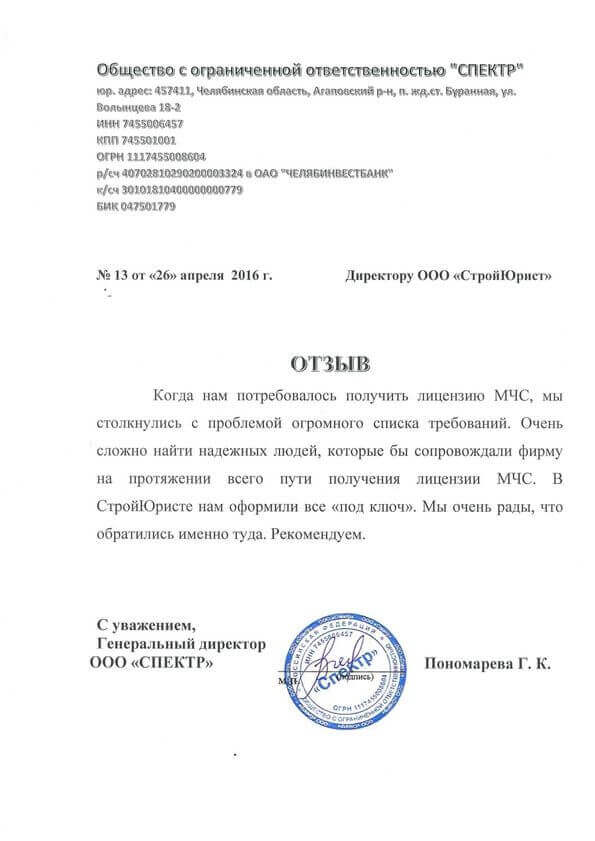 Отзывы клиентов "СтройЮрист" по лицензированию МЧС в Липецке