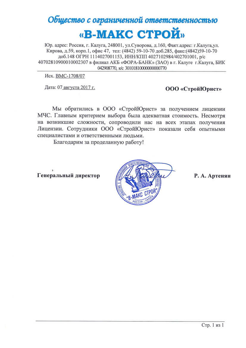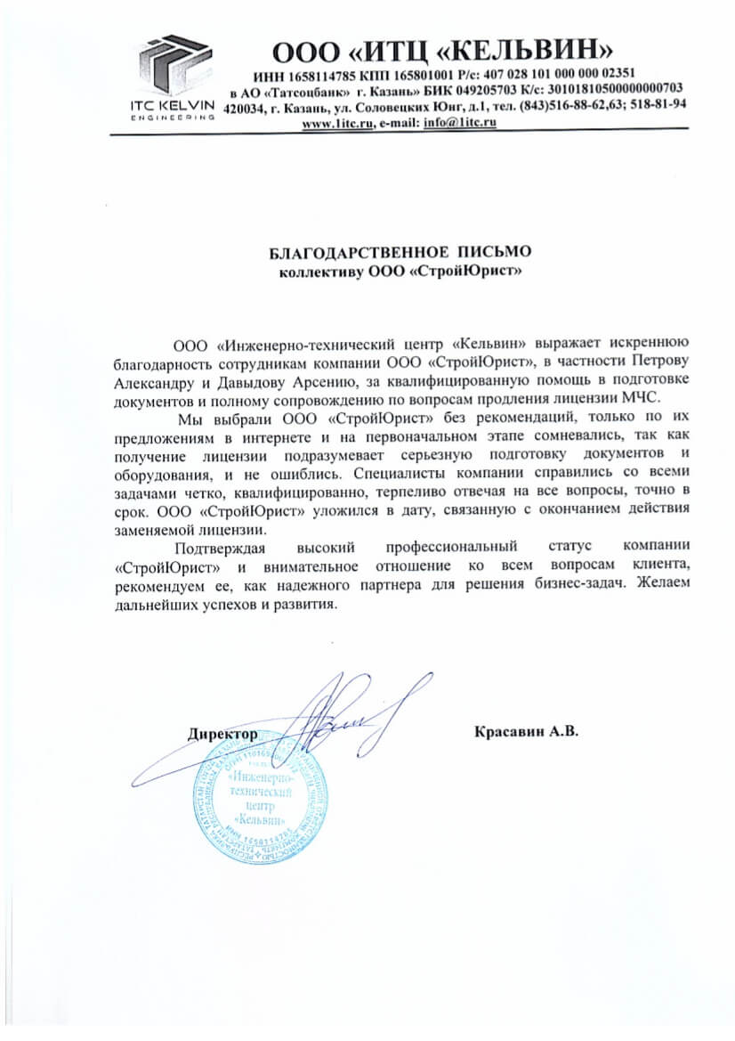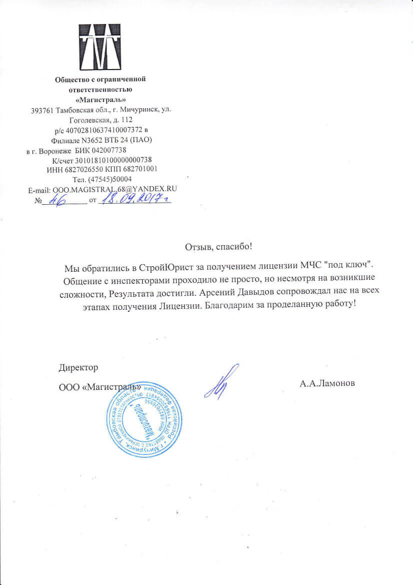 Отзывы клиентов "СтройЮрист" по лицензированию МЧС в Липецке